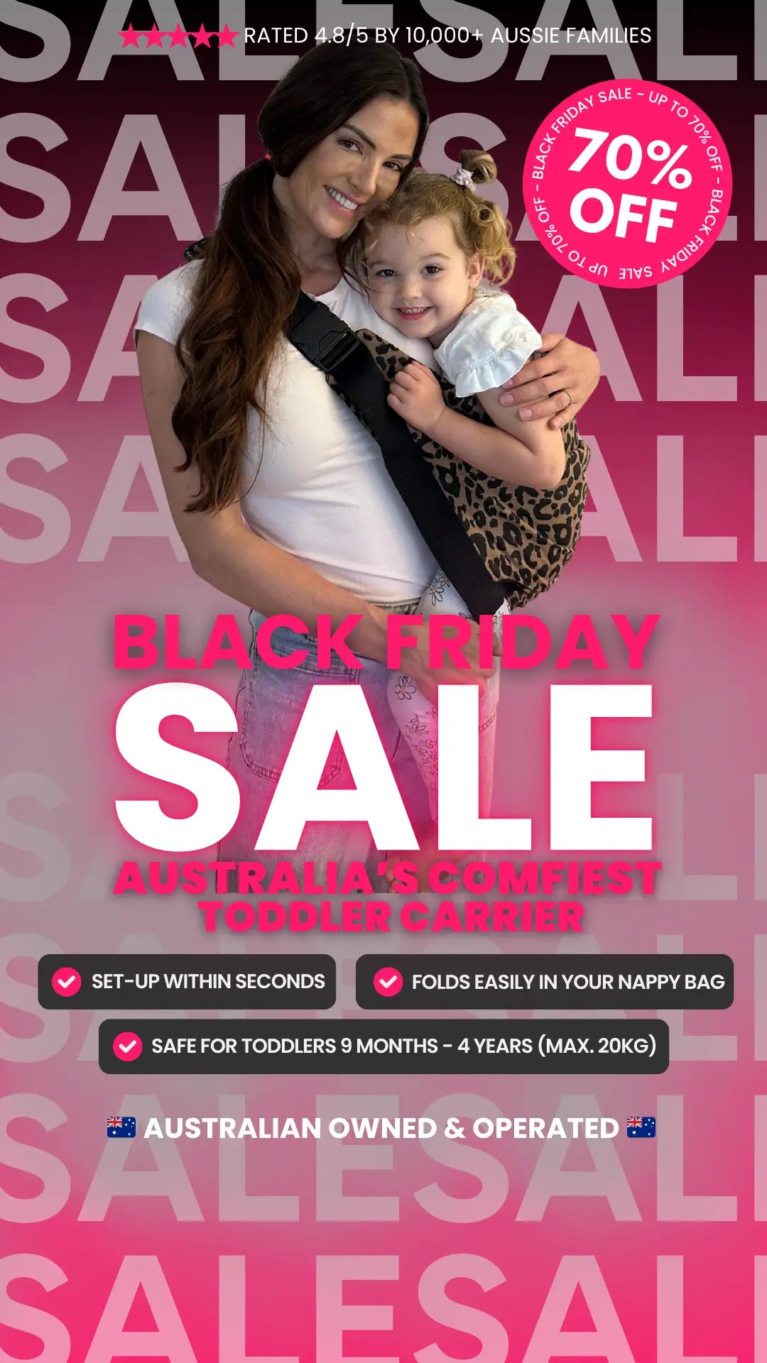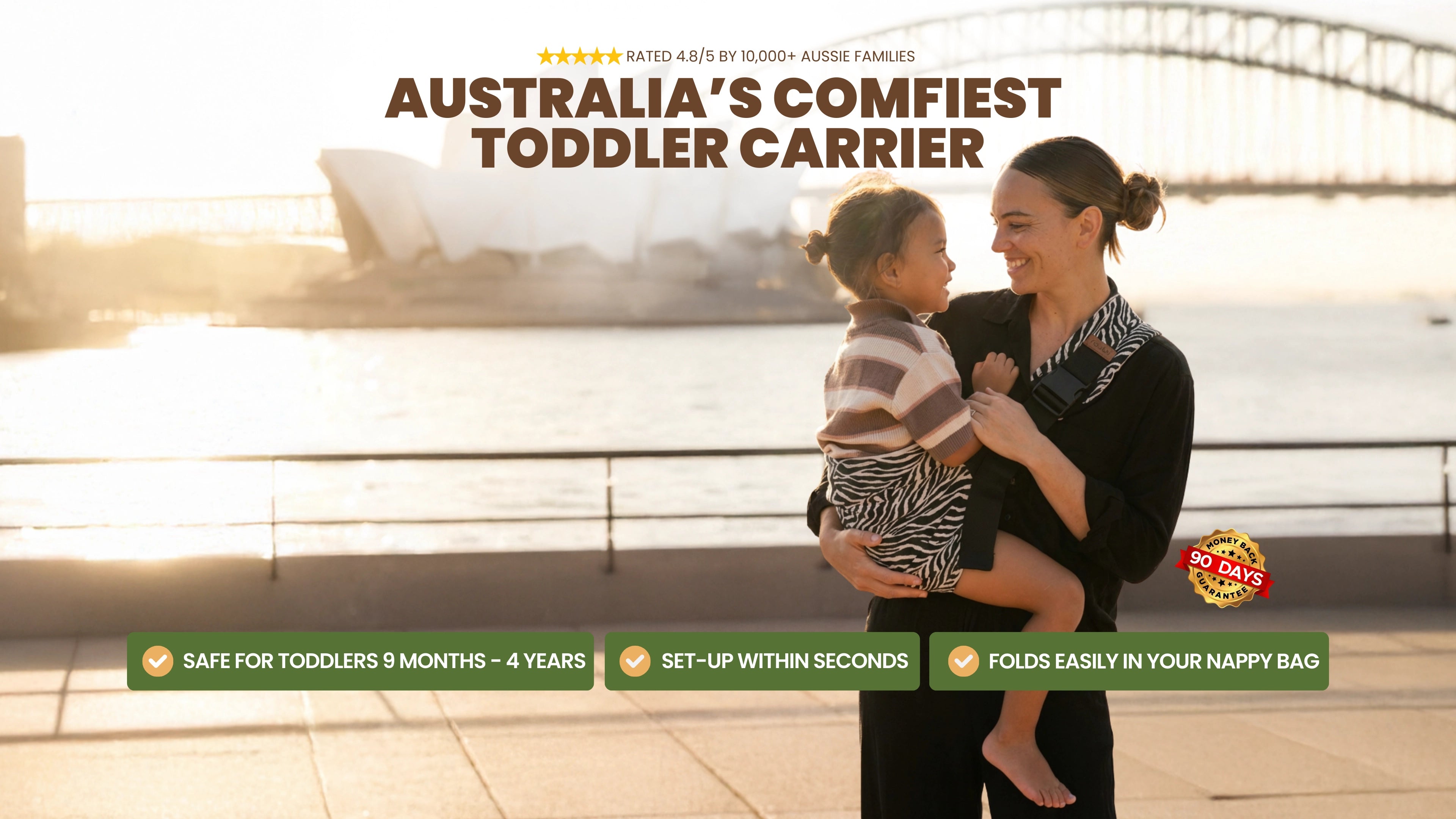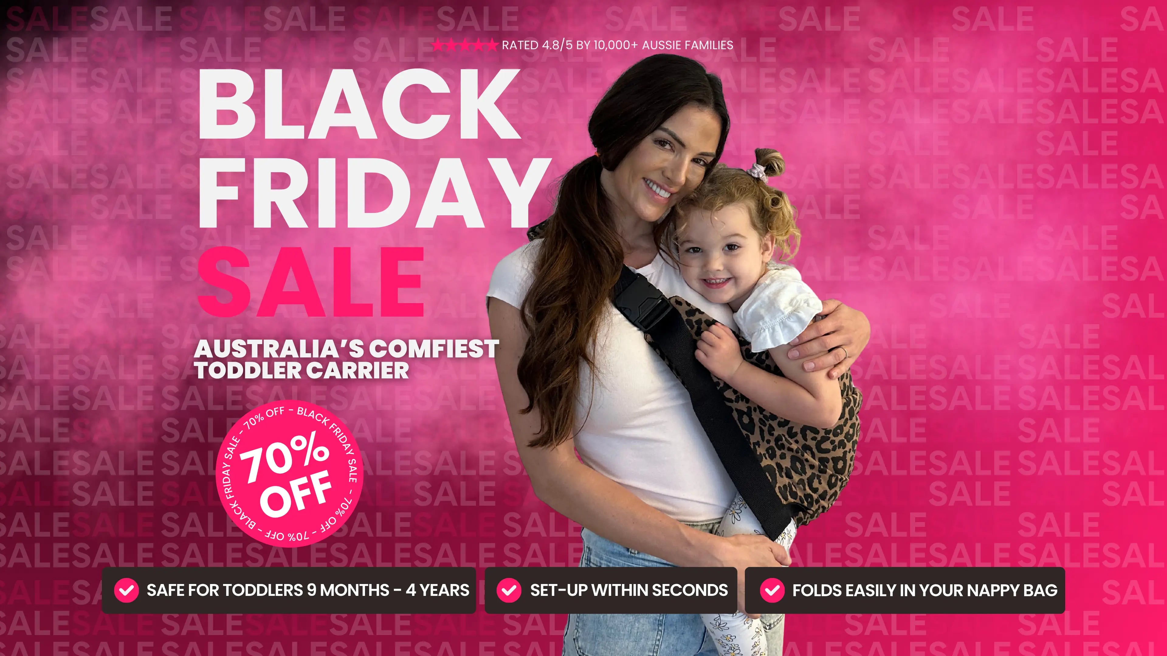 Quick to pop on and perfect for adventures with my little bub. I keep a hand on him and no more dead arms. Stays comfy on bushwalks and city strolls. No bulky straps, just a sleek look that goes with everything.